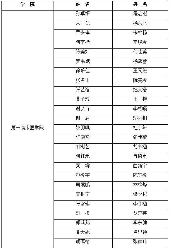 附件1:广州中医药大学2022级中医学专业铁涛班入围面试学生名单
