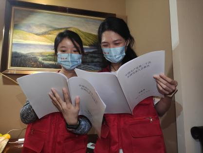 (志愿者们开展《中国共产党第二十次全国代表大会报告》学习会)