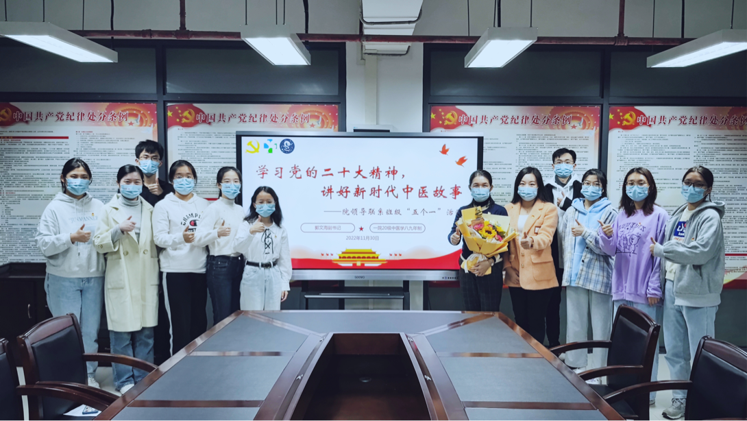 2022年11月30日下午15时30分,广州中医药大学伟德国际1946源于英国党委副书记郭文海所联系的2020级中医学八九年制班级在三元里校区综教楼925召开了以“学习党的二十大精神,讲好新时代中医故事”为主题的党团组织生活会,11名班级学生党员、入党积极分子、班团骨干、新发展团员代表及班级辅导员池思晓参加了本次会议。会议第一个环节,与会学生代表分享关于学习党的二十大报告的心得体会。团支书梁水先、党员代表陈嘉慧、党员代表李懿、入党积极分子代表梁智昆、团支部组织委员刘雅楠、新发展团员代表许雯哲先后分享了学习心得。梁水先谈了她对党的二十大报告中“促进中医药传承创新发展”的理解,作为一名预备党员、新时代中医学子,她对中医药事业的未来充满信心,并表示将会紧紧跟随党的脚步,积极响应时代主题,为促进新时代中医药事业发展而不断奋斗;陈嘉慧以“以小见大,我眼中的十年变化”为主题,结合个人所见、所闻、所感,分享了对我国完成脱贫攻坚历史任务的感想;李懿围绕党的二十大的主题与主要内容,从法治、民生以及国防安全等方面分享了她对“人民是我们党执政的最大底气”等重要内容的理解;梁智昆着眼于中国共产党过去5年的工作成绩和新时代 10 年的伟大变革进行学习分享,表达了听党话、跟党走的坚定决心;刘雅楠从青年大学生的身份出发,分享了自己对党的二十大报告中“青年强,则国家强”及“全党要把青年工作作为战略性工作来抓”的学习感想;许雯哲整理分享了习近平总书记所宣读的党的二十大报告的要点内容,作为新入团的学生代表,习近平总书记对青年的深切寄语让她备受鼓舞。
