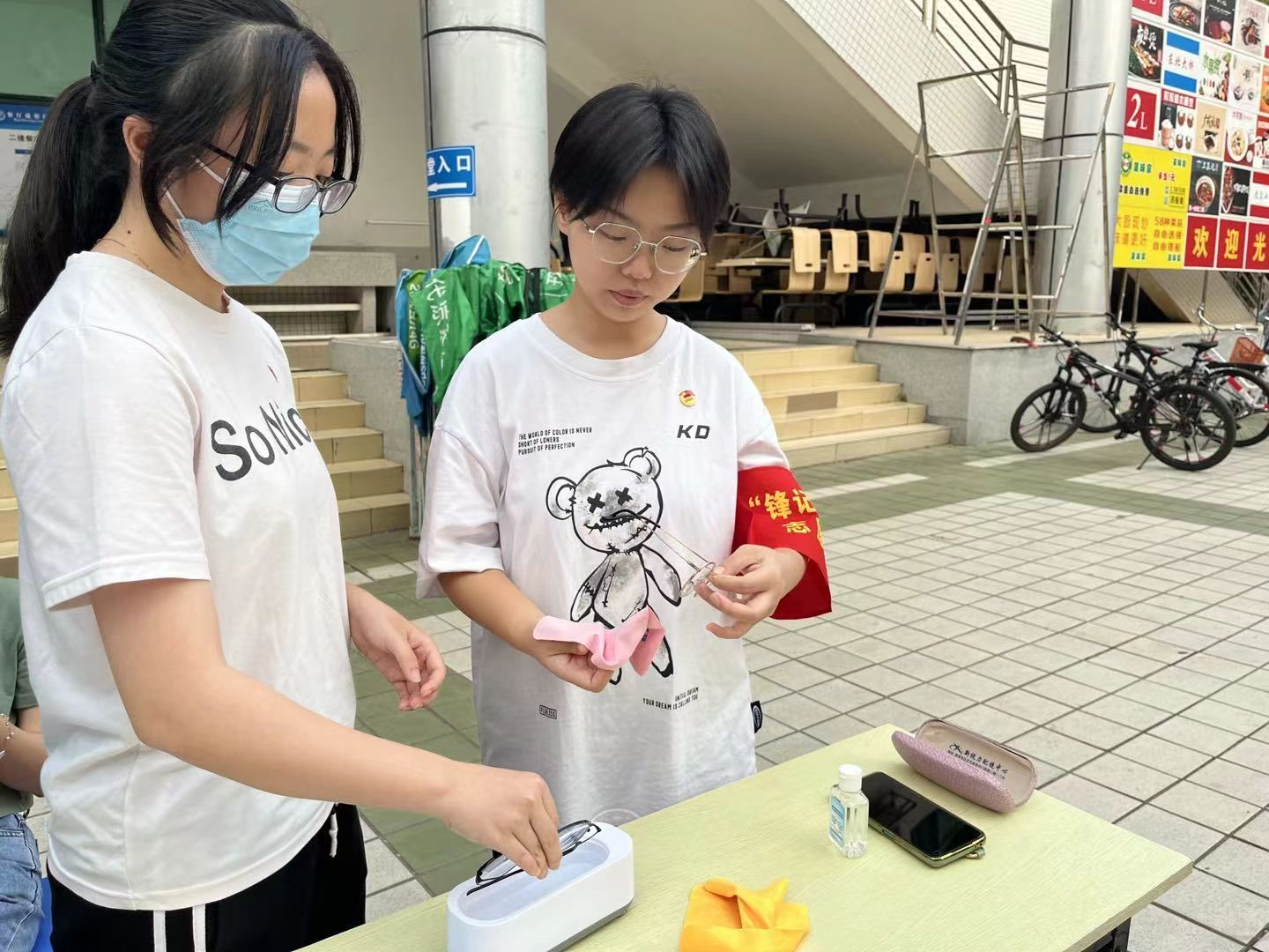 三月春风暖人心,雷锋精神照我行。3月18日、19日,一院学生团委携手生命缘青年志愿者协会,合作开展“锋”记服务站活动,组织25名志愿者在大学城校区第一食堂前空地为同学和教职工们提供免费洗车、除锈、贴反光条、清洗眼镜、贴耳穴、推拿与量血压等志愿者服务。志愿者们分工明确,秩序井然,以实际行动展现了责任担当与服务奉献精神。同学和教职工们感受到被服务的关怀,纷纷向志愿者们表达感谢。