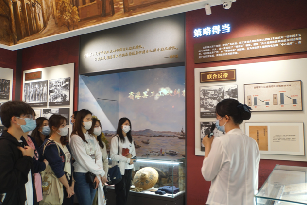 当日上午,研学团队到达位于广州市越秀区的省港大罢工纪念馆。1925年,为反抗帝国主义在华暴行,在中国共产党的统一领导下,穗港两地的进步工人携起手来,开展了历时1年零4个月的罢工,在中国革命史上写下了光辉的一页。在参观过程中,研学团队成员们认真聆听讲解员讲述省港工人友爱互助,维护民族尊严的光辉历史,浏览相关档案史料,观看专题影片,并不时驻足欣赏历史遗物。同学们仿佛置身于激荡变革的年代,沉浸在工人运动波澜壮阔,汹涌澎湃的氛围之中。
