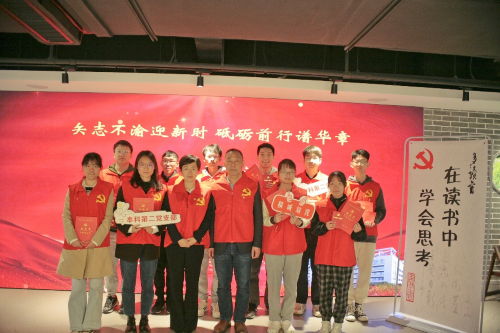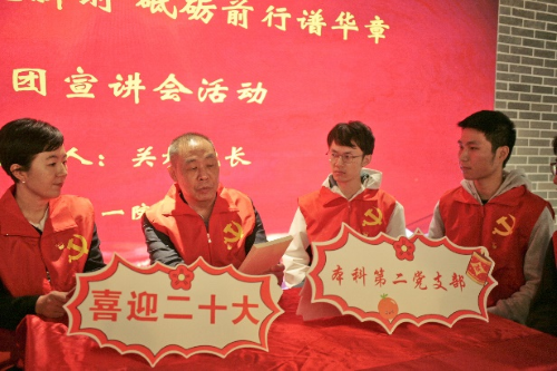 讲座之后,关彤副院长参加了本科第二党支部的“杏林宣讲青骑兵”党的二十大精神宣讲推荐学习书目活动。在综教楼10楼一院院史馆里,关彤副院长为同学们倾情推荐了《中国共产党党史》一书,他强调从党史出发,了解党的风雨历程,会让我们更加深入地理解新党章的内容、中国特色社会主义新时代以来的方针政策和党的二十大精神。关彤副院长还为同学们派发了党的二十大精神学抄笔记本,他鼓励同学们加强阅读,汲取思想,立志做有理想、敢担当、能吃苦、肯奋斗的时代好青年,努力为中华民族伟大复兴贡献青春力量。