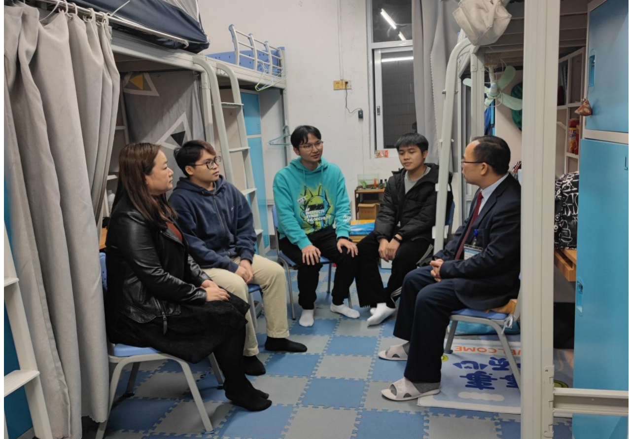 在宿舍的交流中,杨院长对同学们生活中的具体问题进行了细致的询问。谈及如何平衡备战考研与临床实习工作问题,他强调同学们一定要做到理论知识与临床实践两手抓,努力夯实基础知识,多维度发展临床能力,同时,杨院长也对同学们的休息情况和寝室管理中遇到的问题十分关切。最后院长寄语同学们:希望我院优秀学子可以尽情绽放自己的才华,将来也可以选择留在本院工作,为我院的工作添砖加瓦,为中医事业牢牢护航。
