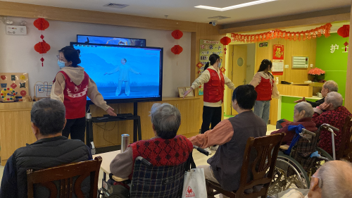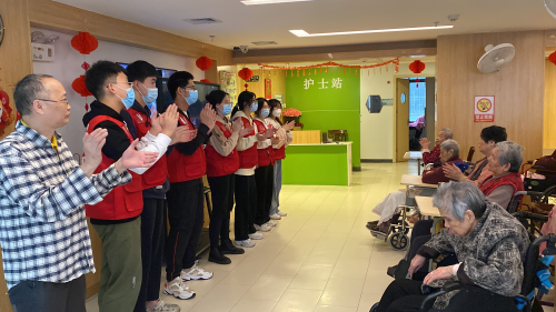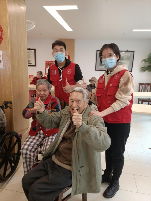 在支部学生党员陈嘉慧的带领下,志愿者和老人们合唱《学习雷锋好榜样》,在歌声中重温雷锋事迹,感悟雷锋精神。经典又耳熟能详的红色老歌迅速拉近了双方的距离。接着,志愿者们展示了中医养生保健气功——八段锦。老人们学习热情高涨,跟着“小老师”们摆动身体,这位阿婆动动手,那位阿叔伸伸腿,将现场气氛推向高潮。锻炼结束,志愿者们走到老人身边为其提供简单的推拿服务。“阿婆,这个力度怎么样呀,太重的话,我轻一点。”志愿者边推拿边和老人唠嗑,“舒服舒服”已经91岁高龄的张奶奶笑着回答。“阿叔,这里的环境看起来不错,平时住的应该挺开心吧。”另一位志愿者亲切地和老人交谈。“可以啊,我来这里六年了。”王大叔满意地说,“现在真幸福,吃穿不愁,还住着干净的居舍,屋里安装有空调,冬暖夏凉,啥时候也没有现在的政策好,隔三差五还有你们这些志愿者来为我们服务,真的太谢谢啦。”另外,了解到老人们年事已高,或多或少存在一些健康问题,志愿者们结合本身的医学专业背景,为他们细心讲解糖尿病、高血压等常见老年病的饮食注意、新冠阳康后保健等知识。经过一下午的交流谈心,养老院活动中心里充满了欢声笑语,看着老人们幸福的表情,志愿者们也露出了灿烂的笑容。活动结束后,志愿者们还惊喜地收到了来自养老院社工的反馈:“那位穿黑外套的老爷爷刚刚还在问你们留不留下来吃饭,他很开心、也很喜欢你们,希望你们以后能常来。”这样一句句朴素的话语,便是给志愿者们最大的回馈。