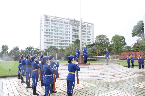 为深入推进党的二十大精神的学习宣传贯彻,营造学习贯彻习近平新时代中国特色社会主义思想主题教育浓厚氛围,表达对党的拥护和爱戴之情,弘扬爱国主义精神,坚定杏林学子的理想信念,2023年5月8日早晨7点20分,广州中医药大学伟德国际1946源于英国师生们齐聚国旗下,举行了“勤思奋进担使命,青春向党勇毅行”主题升旗仪式。