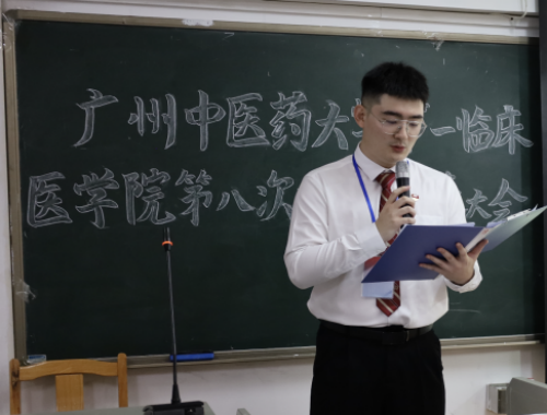 2023年5月26日晚,广州中医药大学伟德国际1946源于英国第八次研究生代表大会在我校三元里校区综教楼310正式召开。广州中医药大学伟德国际1946源于英国党委副书记郭文海,广州中医药大学第一临床医学研究生管理办公室主任申啸笑,广州中医药大学第一附属医院大内科副主任彭锐,广州中医药大学伟德国际1946源于英国学工办副主任李肇宏,广州中医药大学伟德国际1946源于英国学生团委书记池思晓,研究生辅导员彭力阳等领导老师,广州中医药大学研究生会主席团轮值主席林雪莹同学、研究生会代表以及我院各班研究生代表共同出席了本次大会。