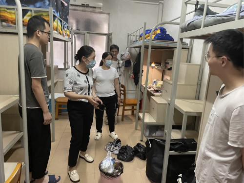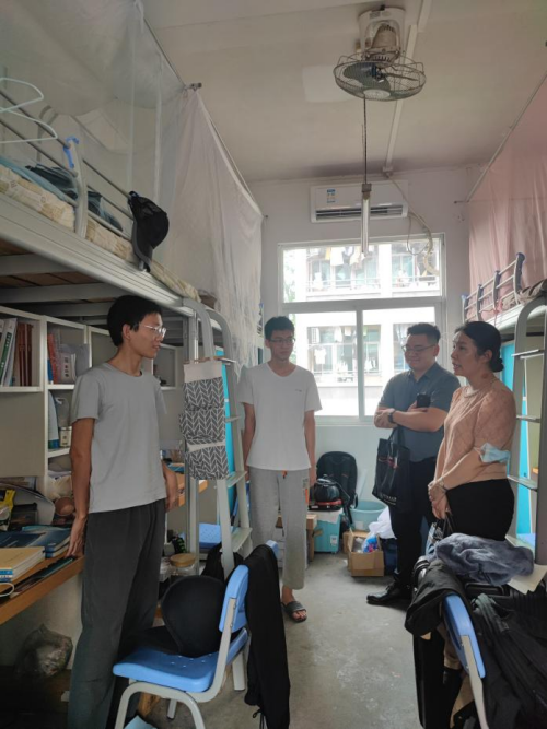 2023年6月2日、6日下午,我院党委副书记郭文海同志、学工办李肇宏副主任及辅导员邱敏老师前往实习学生宿舍走访慰问,了解即将前往实习基地的同学们以及刚返校的毕业生的情况。在走访过程中,郭书记耐心倾听同学们的心声,与同学们畅谈未来规划,关怀同学身心情况,解答同学困惑,希望同学们注意身体、适当运动,坚持劳逸结合,保持健康生活,并提醒同学们及时向学院反馈遇到的学习生活上的困难和问题,学院会尽全力为每一位同学排忧解难。