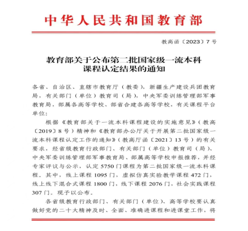 课程是人才培养的核心要素,课程质量直接决定人才培养质量。一直以来学院坚持落实立德树人根本任务,高度重视课程建设,不断优化顶层设计,完善课程体系,强化课程思政引领,推进课程内涵建设,为入选国家级一流本科课程打下了坚实的基础。