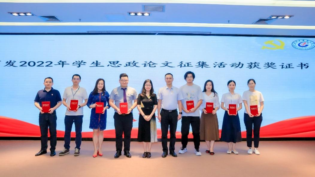 会议伊始由学院党委副书记、院长李俊同志宣读我院2022年学生思政论文征集活动获奖名单,党委副书记、纪委书记张念樵同志宣读“三全育人”工作室申报立项结果通知。接着,由大学职能部门领导及学院领导分别为获奖师生颁发2022年学生思政论文征集活动获奖证书。
