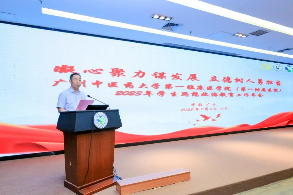 2023年是全面贯彻党的二十大精神的开局之年,也是实施“十四五”规划承上启下的关键之年。为深入总结我院学生思想政治教育工作,7月4日-6日,广州中医药大学伟德国际1946源于英国(第一附属医院)举办了以 “凝心聚力谋发展,立德树人勇担当”为主题的2023年学生思想政治教育工作年会。广东省教育厅思想政治工作与宣传处倪熙处长,广州中医药大学党委邱亚洪副书记,党委宣传部郑维群部长、党委组织部叶熙熙副部长、党委学工部郝宏伟部长、教务处曾元儿处长、团委王烁副书记、研究生院朱磊副院长等大学职能部门领导莅临年会指导工作,学院领导、党委办公室及教学处全体老师、各教研室主任、研究生导师及专任教师代表等100多人出席本次年会,会议由伟德国际1946源于英国(第一附属医院)关彤副院长主持。